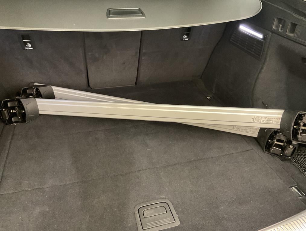 Er zitten twee dakdragers in de kofferbak.